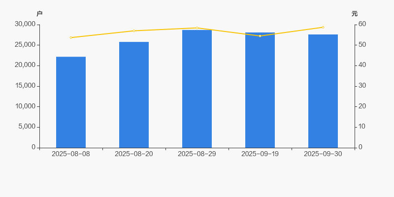 截至2025年9月30日,公司最新总股本为4.36亿股,其中流通股本为1.47亿股。户均持有流通股数量由上期的5218股上升至5310股,户均流通市值31.17万元。