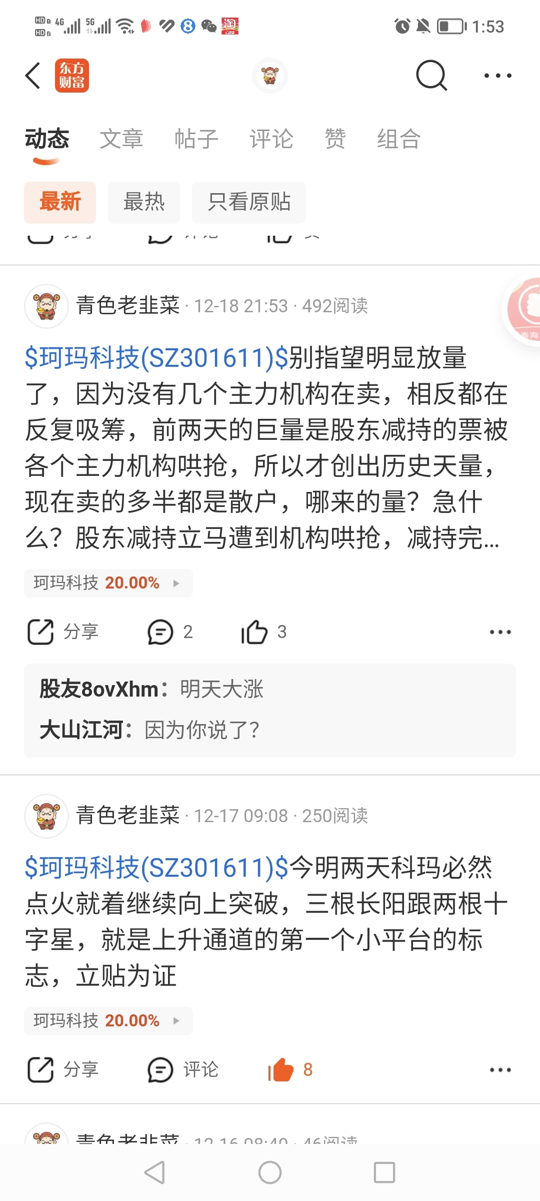 $珂玛科技(SZ301611)$ 科玛一直都走在正确的轨迹上,主力也是良心主力,并没有暴力洗盘,走势都是再标准不过的拉升信号。我早都发帖说了,拉升就在一两天。又有多少人相信呢