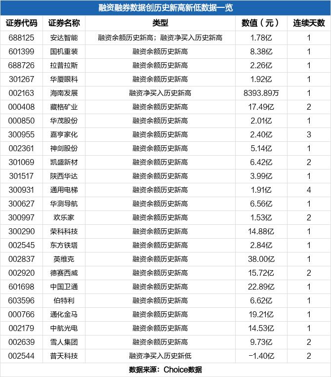 从融资余额增速来看,当日安记食品、珂玛科技、建研设计等融资余额环比增幅居前,其中安记食品环比增长达91.76%。融资余额环比增幅前十标的明细如下: