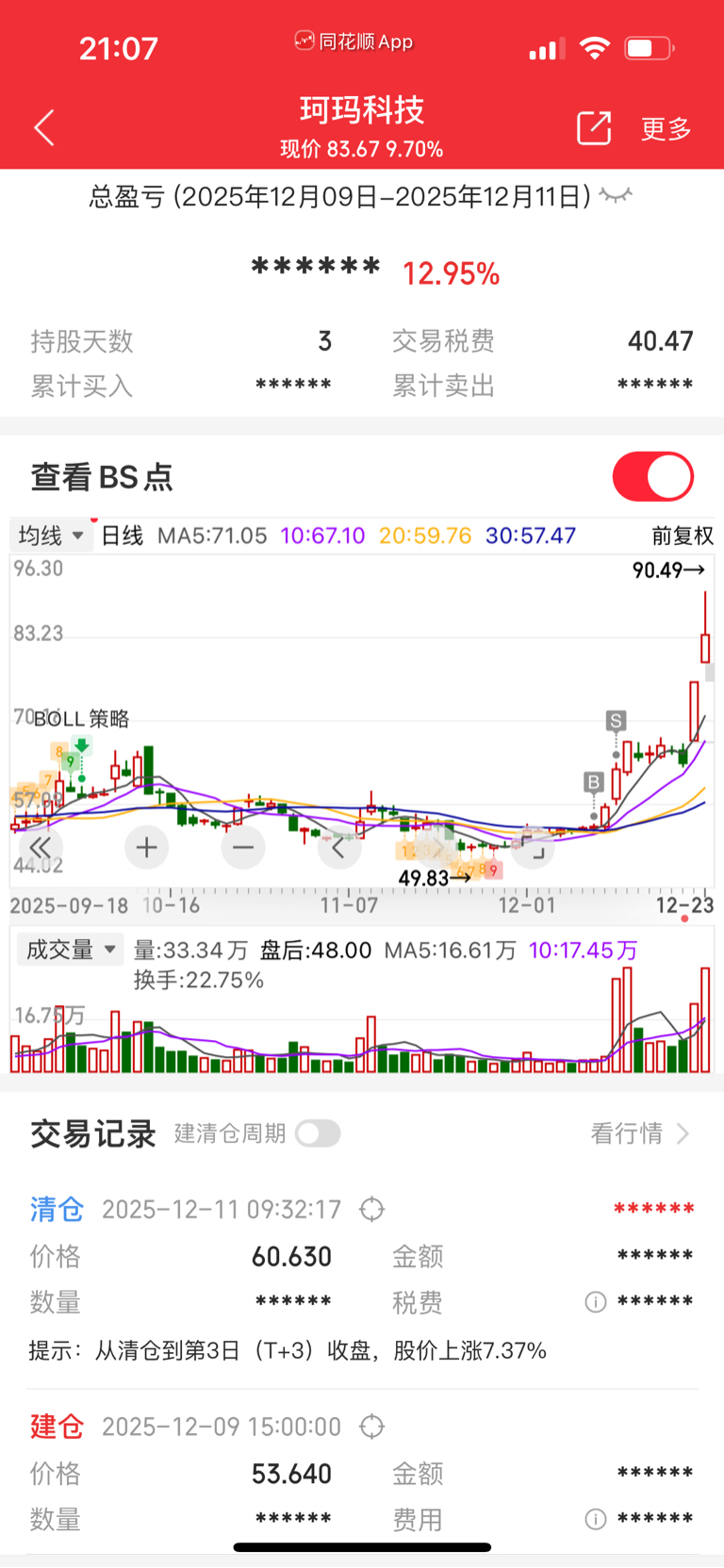 $珂玛科技(SZ301611)$ 本来觉得3天赚13个点挺不错的。买再大涨前开心的很,结果
