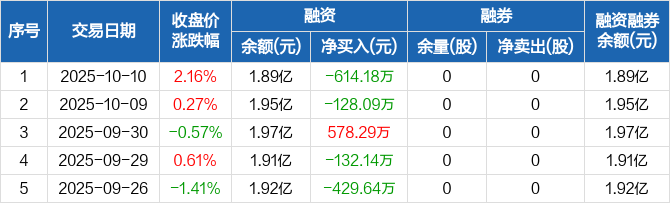 新铝时代:融资净偿还614.18万元,融资余额1.89亿元(10-10)