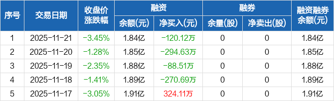 新铝时代融资融券信息显示,2025年11月21日融资净偿还120.12万元;融资余额1.84亿元,较前一日下降0.65%。