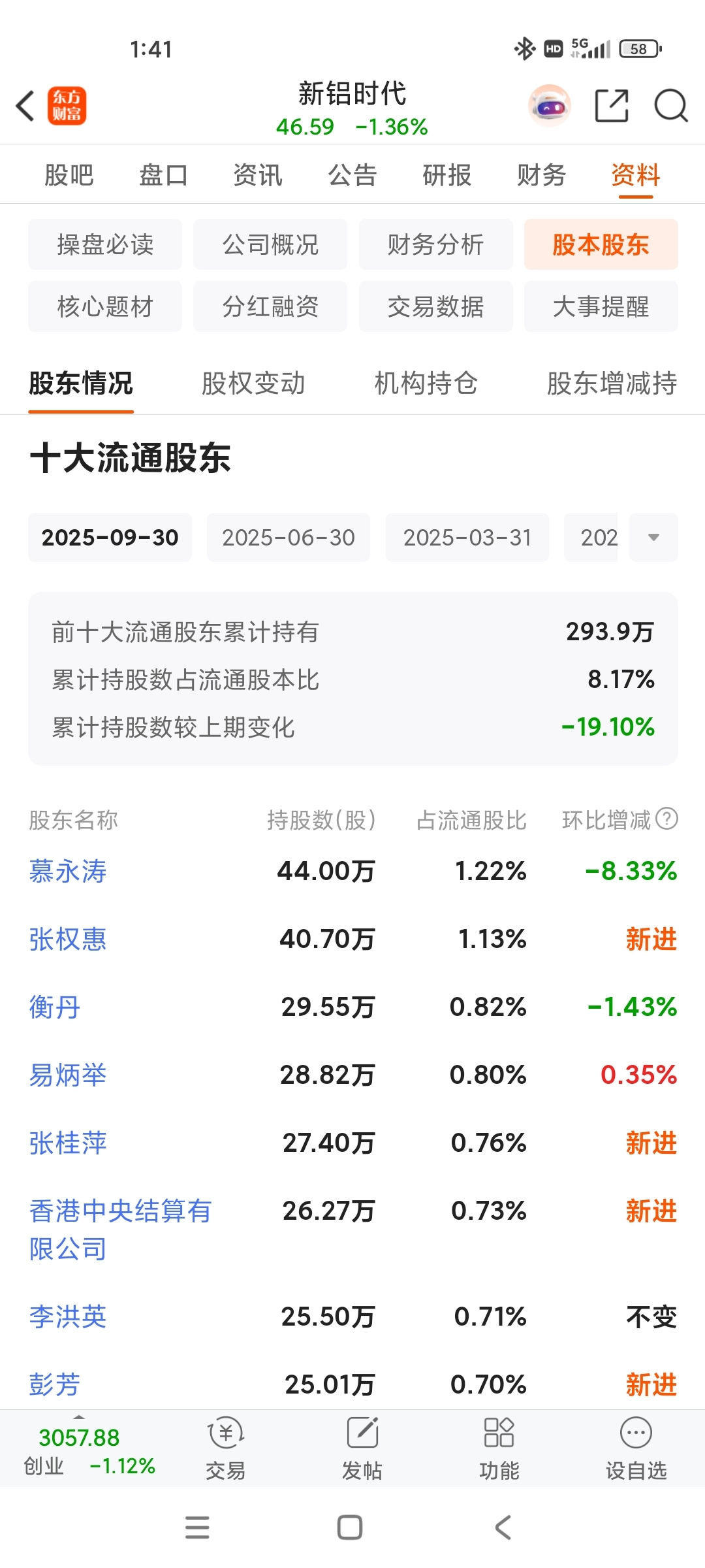 $新铝时代(SZ301613)$ 流通股没有一家机构,第一大流通股东居然只有44万股