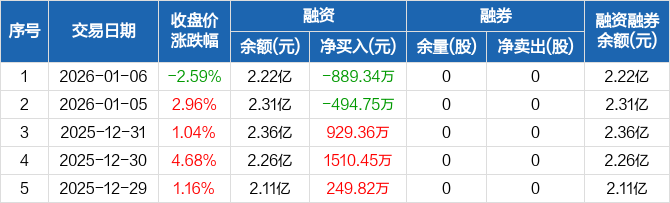 新铝时代:融资净偿还889.34万元,融资余额2.22亿元(01-06)