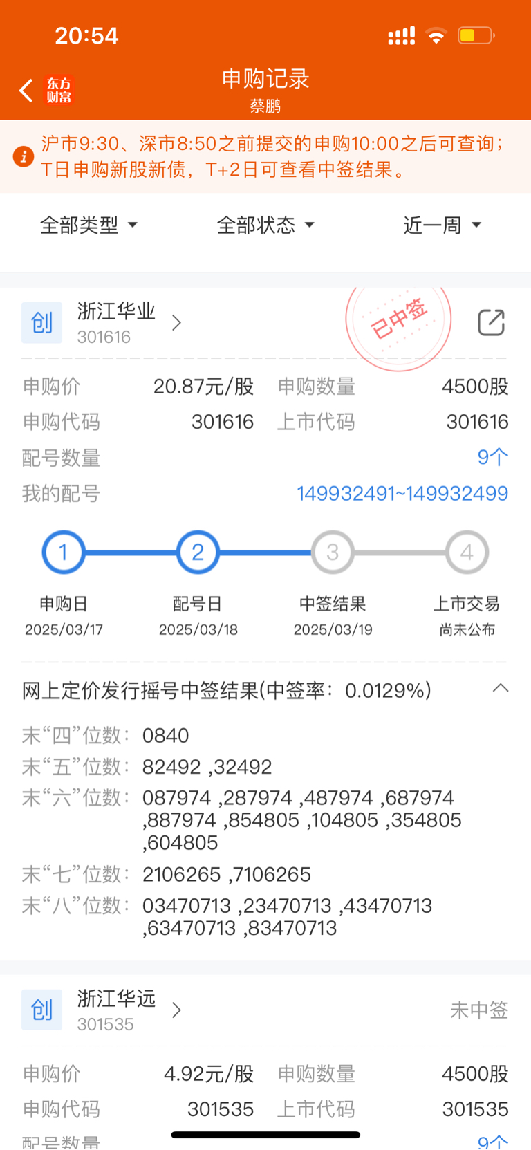 $浙江华业(SZ301616)$ 怎么算中签号码 看不明白