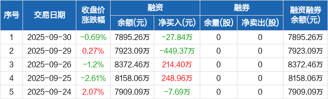 浙江华业:融资净偿还27.84万元,融资余额7895.26万元(09-30)