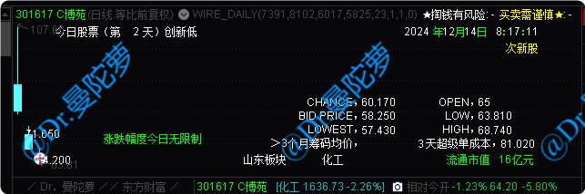 Bid-price58.25,2024/12/13 Clos64.20 博苑股份