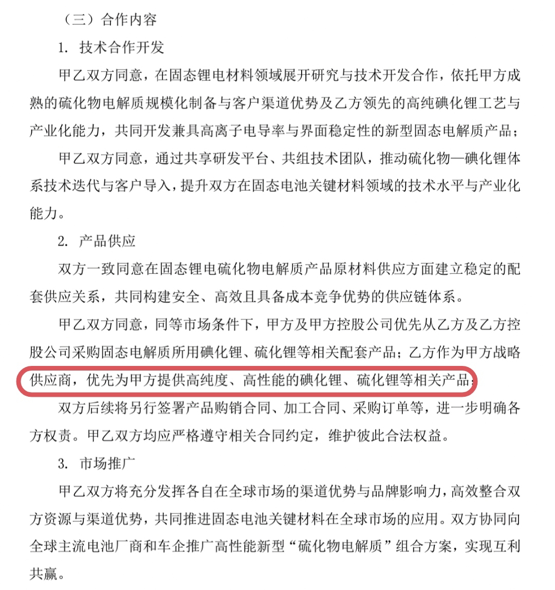 优先提供是不是意味着还可以为其他公司提供碘化锂、硫化锂啊?这不就是市场空间吗?
