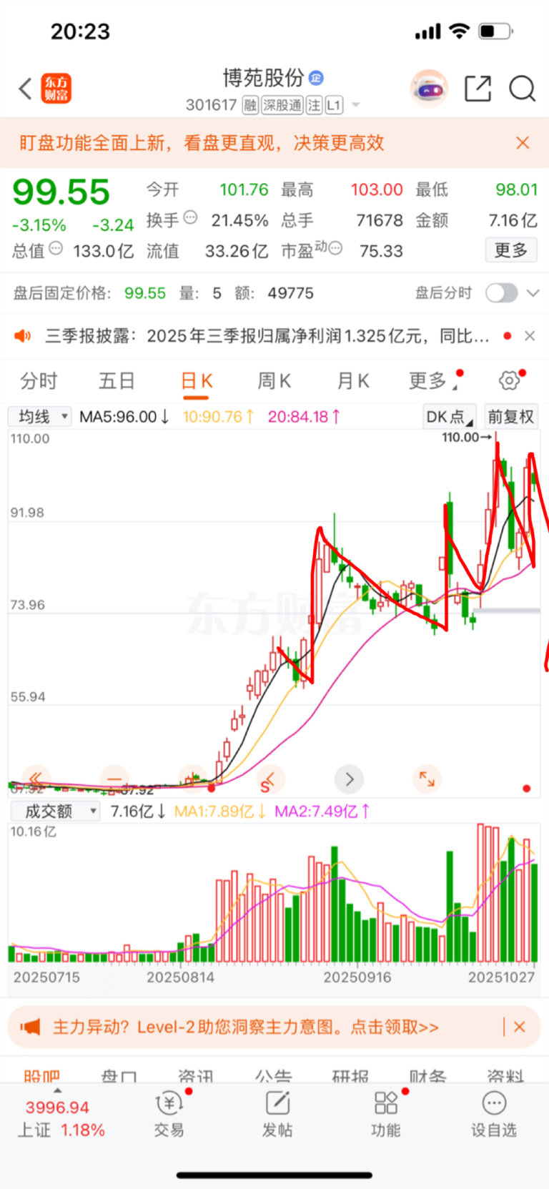 $博苑股份(SZ301617)$ 按照过往走势分析,明天起吗跌6到15个点,后天还会调整,直到82块才会拉升