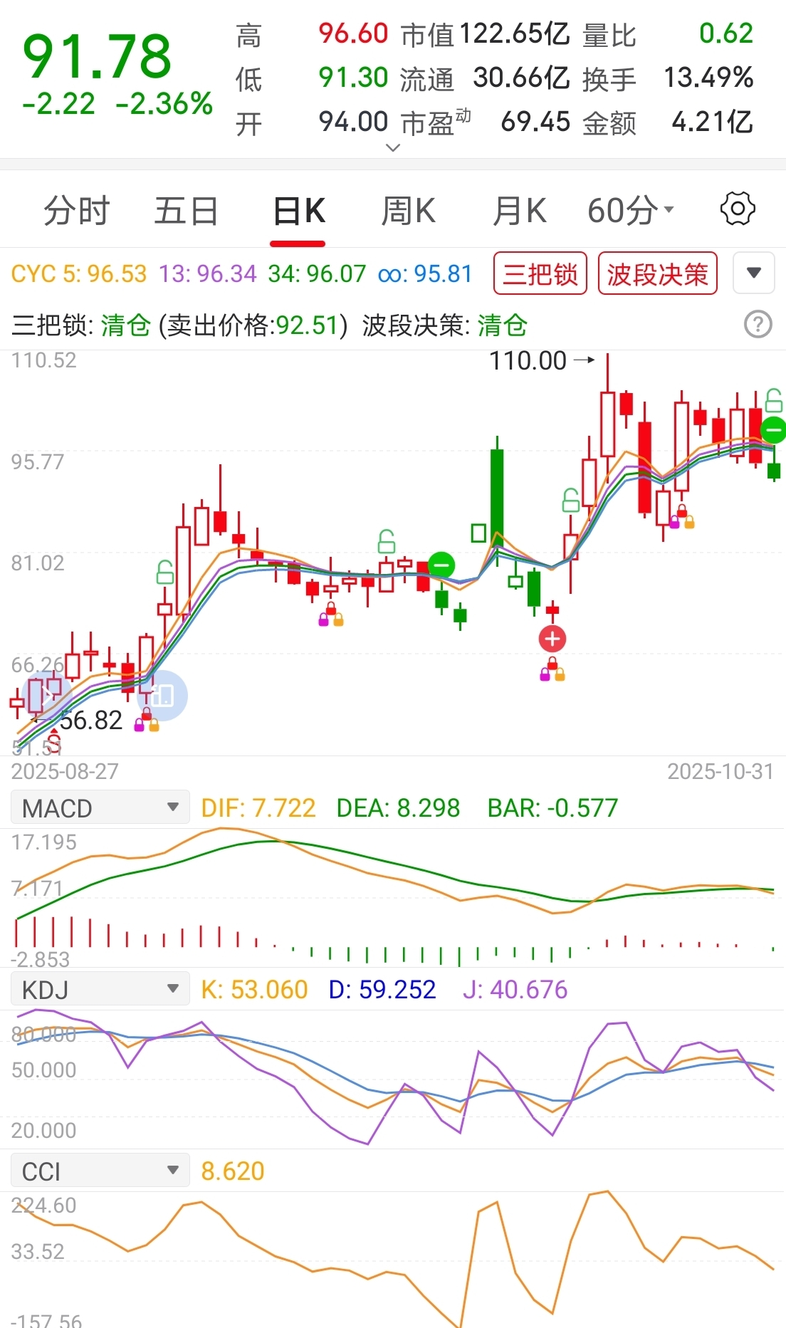 $博苑股份(SZ301617)$ 短期看着是有些危险了,某软件提示卖出