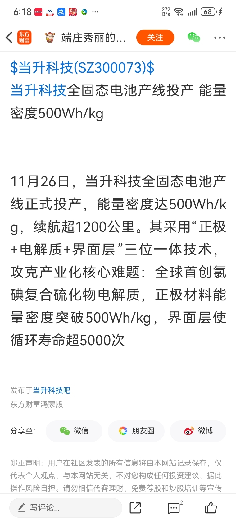 温馨提示: 1.根据《证券法》规定,禁止编造、传播虚假信息或者误导性信息,扰乱证券市场;2.用户在本社区发表的所有资料、言论等仅代表个人观点,与本网站立场无关,不对您构成任何投资建议。用户应基于自己的独立判断,自行决定证券投资并承担相应风险。《东方财富社区管理规定》