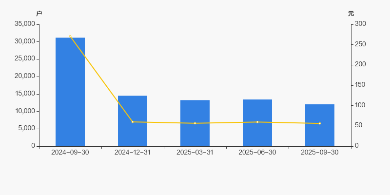 2024年9月30日至今,公司股东户数显著大幅下降,区间跌幅达61.37%。2024年9月30日至2025年9月30日区间股价下降79.22%。