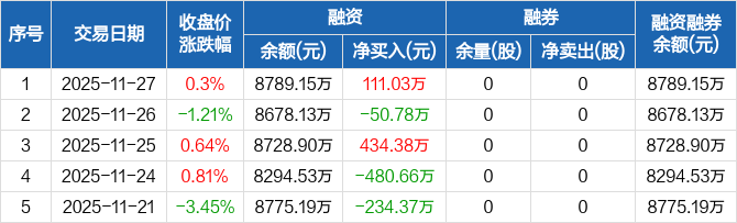 长联科技:融资净买入111.03万元,融资余额8789.15万元(11-27)
