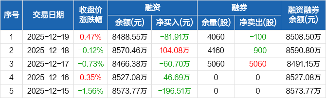 长联科技:融资净偿还81.91万元,融资余额8488.55万元(12-19)