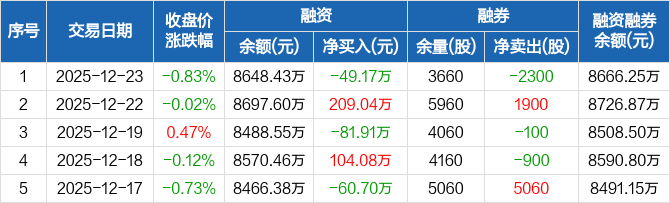 长联科技:融资净偿还49.17万元,融资余额8648.43万元(12-23)