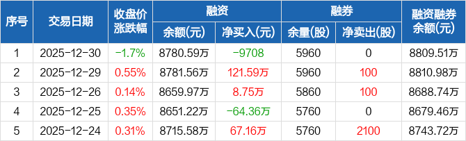 长联科技:融资净偿还9708元,融资余额8780.59万元(12-30)