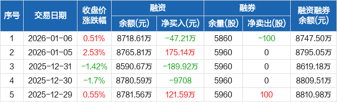 长联科技:融资净偿还47.21万元,融资余额8718.61万元(01-06)