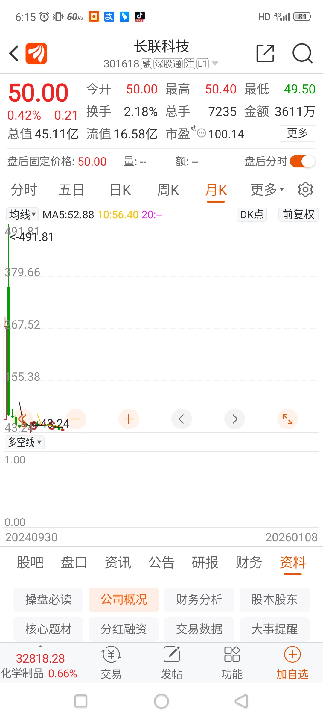 $长联科技(SZ301618)$ 500快跌10倍下来了,满仓干就完了
