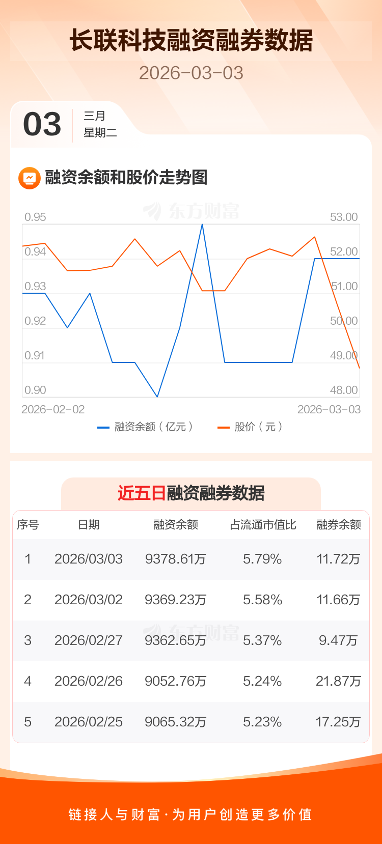 交易所最新数据显示,长联科技于2026年3月3日获融资买入185.96万元,融资偿还176.58万元,当日融资净买入9.38万元。目前,该股融资余额9378.61万,占流通市值比例为5.79%。