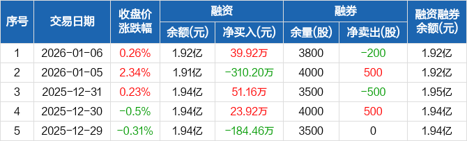 英思特:融资净买入39.92万元,融资余额1.92亿元(01-06)