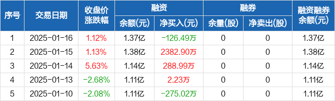 苏州天脉:融资净偿还126.49万元,融资余额1.37亿元(01-16)