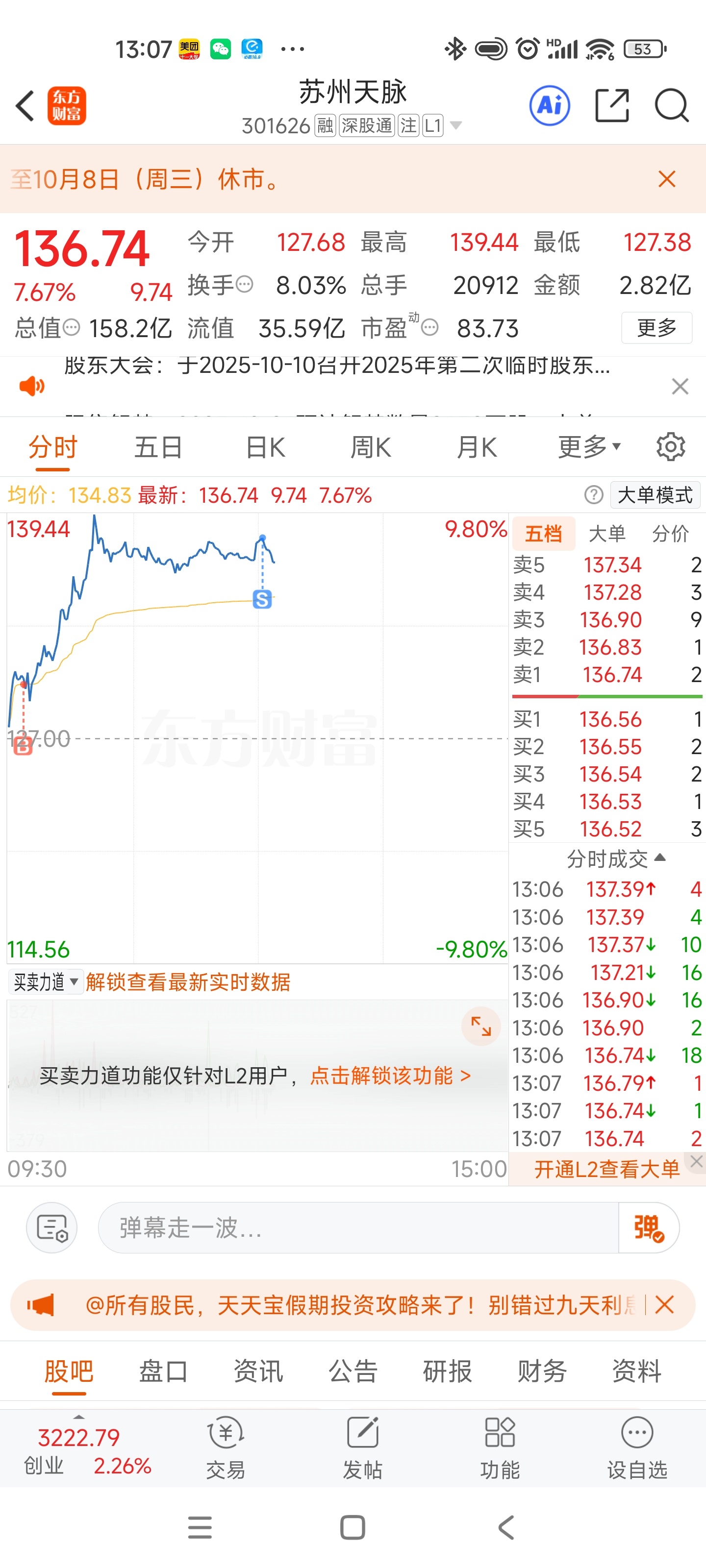 $苏州天脉(SZ301626)$ 138.1出了三分二