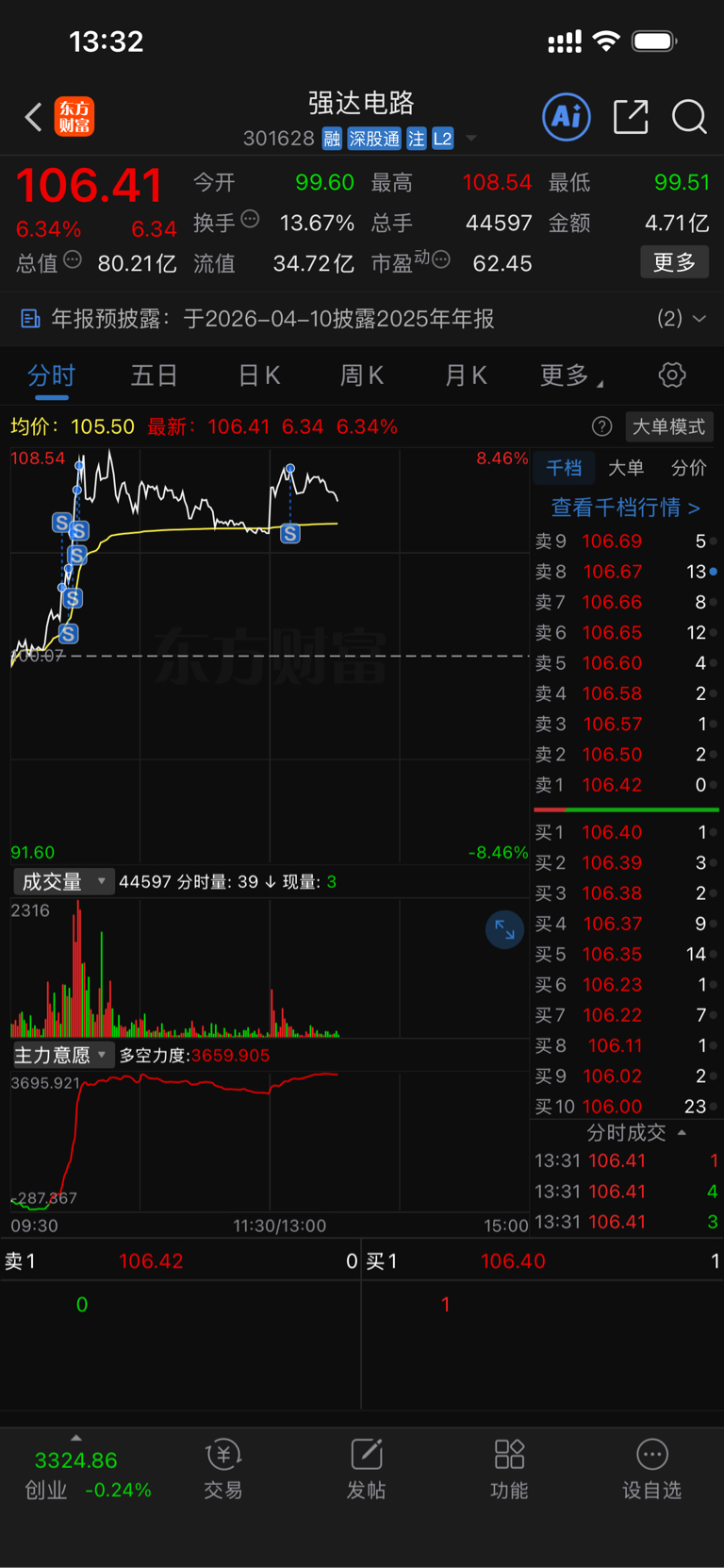 $强达电路(SZ301628)$ 止盈清仓了,拉升吧!不要再给我机会买入了!卖股持币,安心过年,年后再来看,高抛低吸,屡试不爽!祝里面的兄弟连续吃涨停!