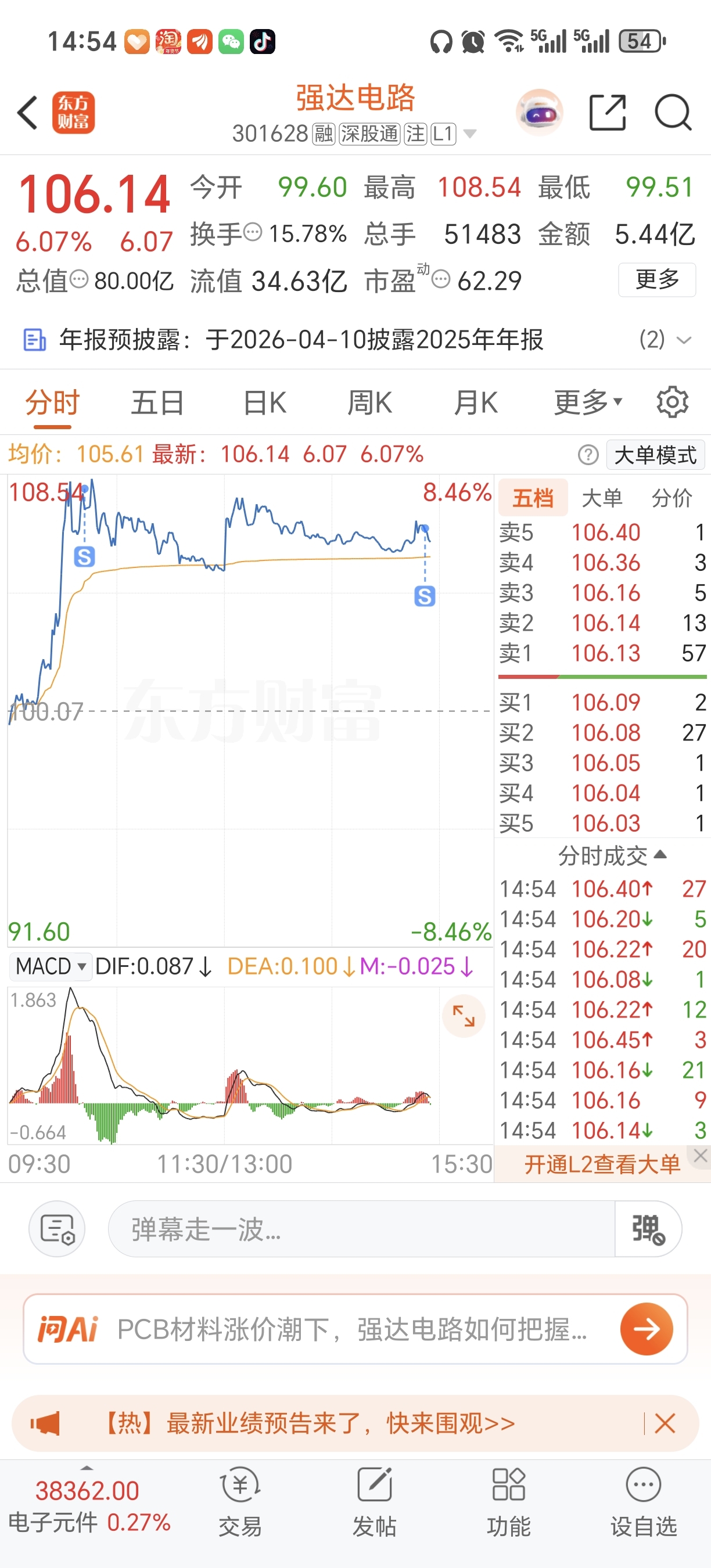 $强达电路(SZ301628)$ 减半仓了