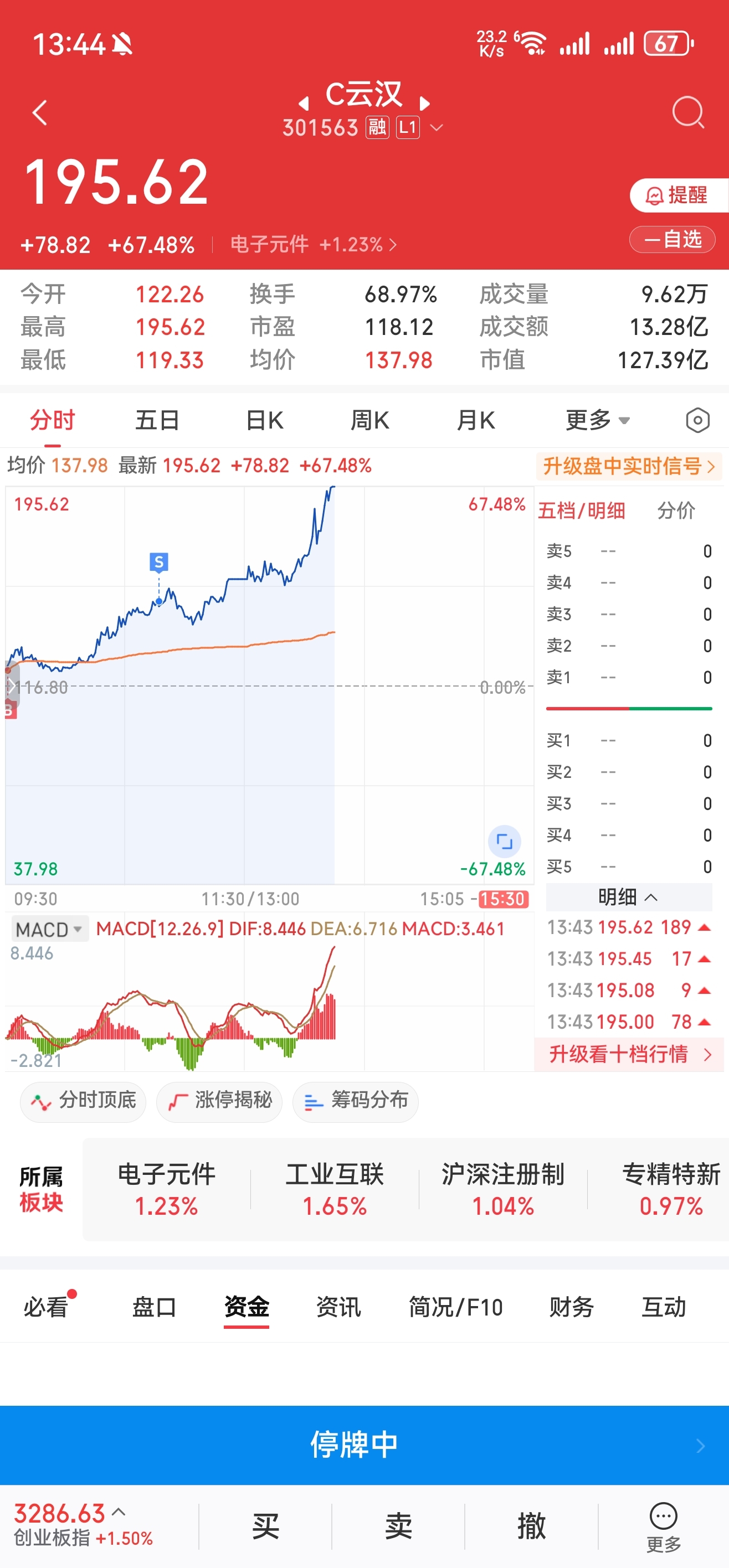 $矽电股份(SZ301629)$ $C云汉(SZ301563)$ 我真的服了,今天这情绪太猛了,卖了你进的矽电股份少赚了10w,矽电股份给点力啊
