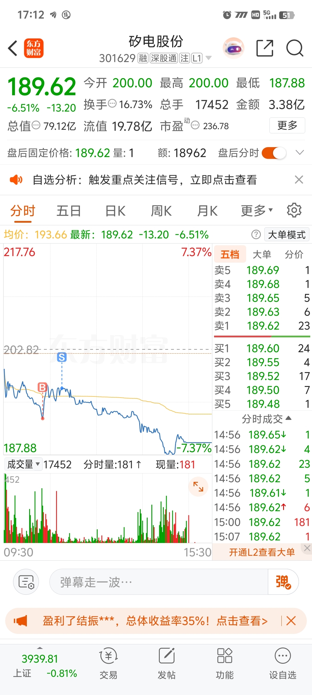 $矽电股份(SZ301629)$ 206本,回调有点狠,本薄,T不过庄家。经不起大亏。