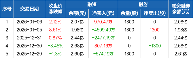 矽电股份:融资净买入970.47万元,融资余额2.07亿元(01-06)