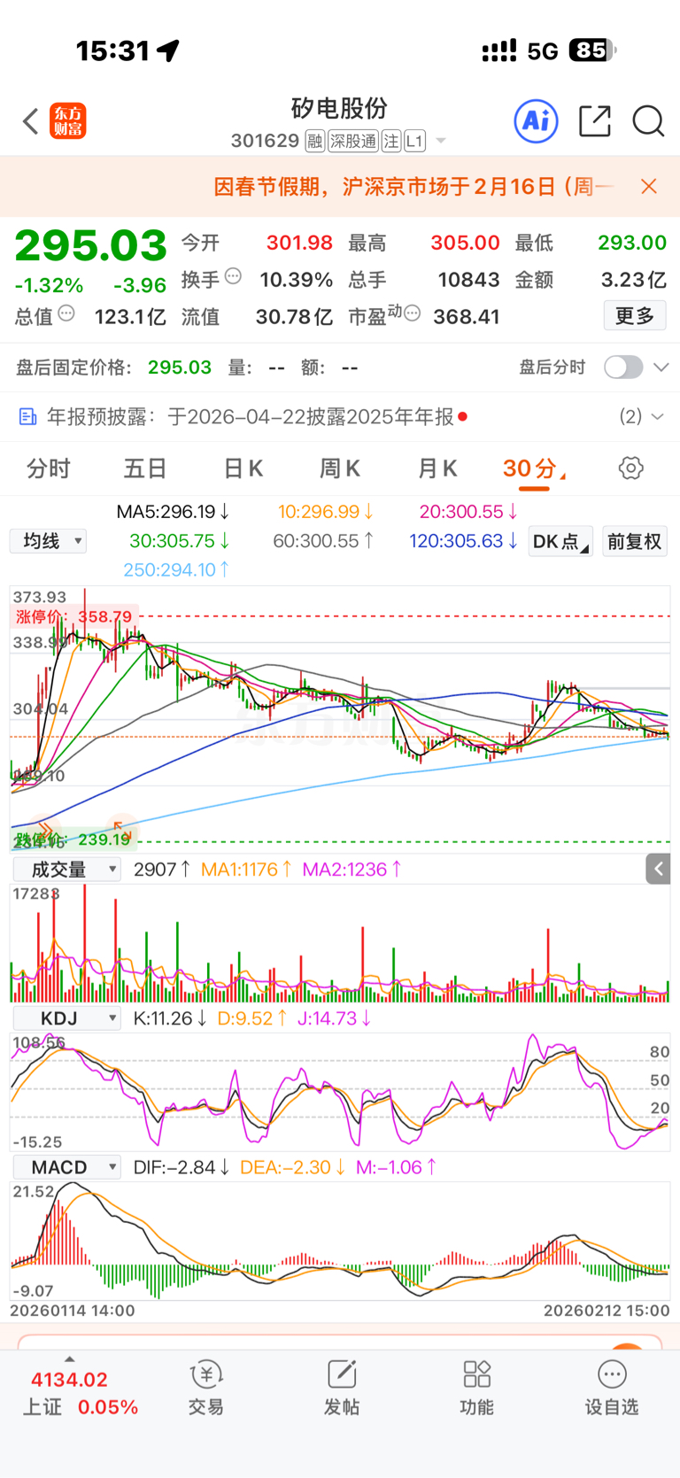 $矽电股份(SZ301629)$ 两点半挂了30分钟趋势最后一道防线294.01。就想打个底仓。还真给了