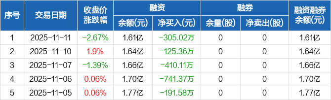 同宇新材:连续5日融资净偿还累计1773.44万元(11-11)