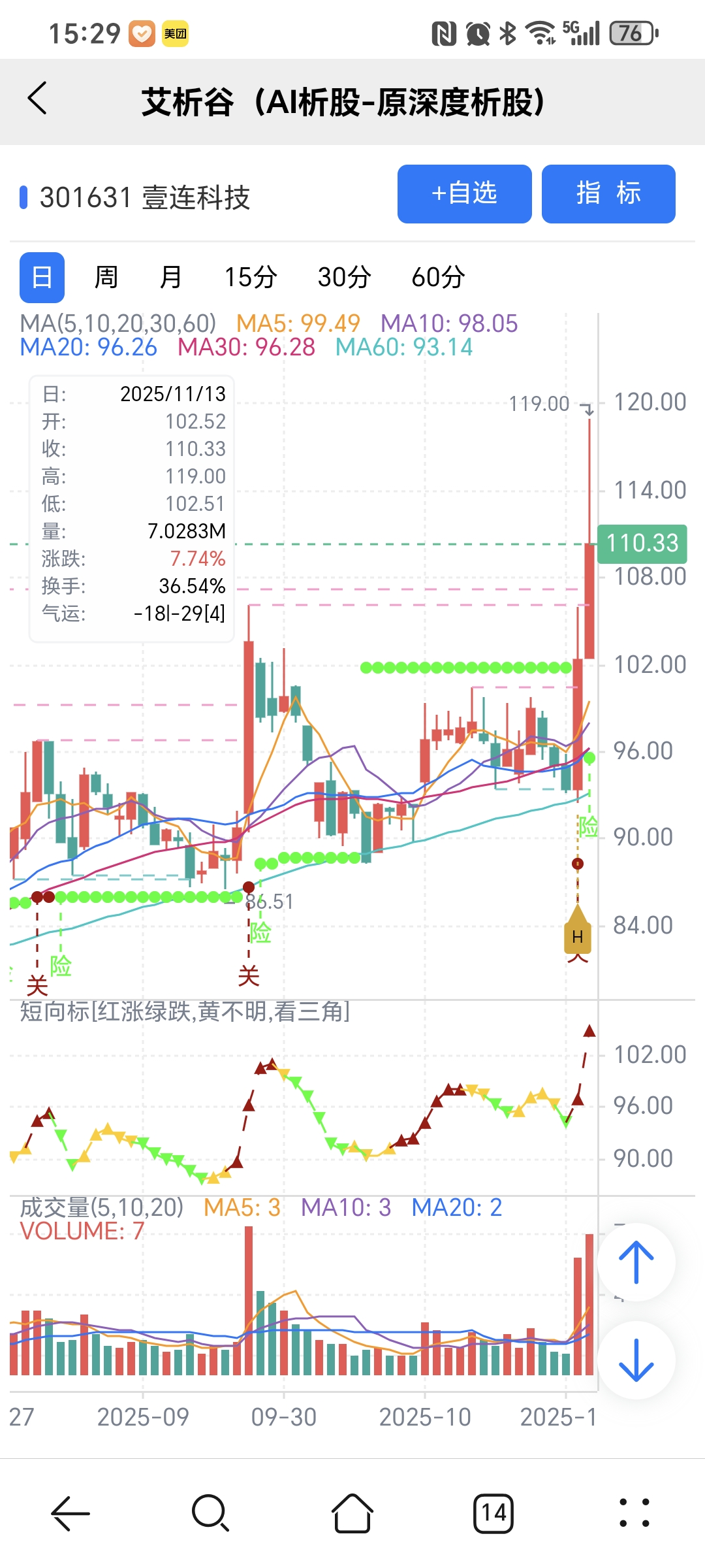 红绿小圆点是艾析谷的量化指标-超级短趋线,是趋势跟踪+突破类的量化指标,完全免费。