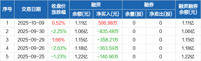 广东建科:融资净买入506.98万元,融资余额1.11亿元(10-09)