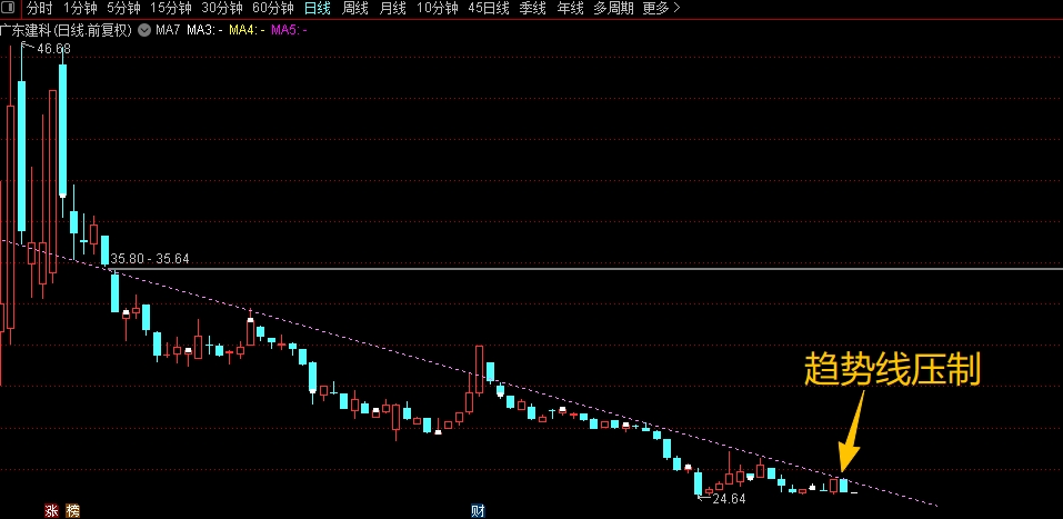 $广东建科(SZ301632)$ 次新股,不太好判断,整体上看,上市冲高之后,一路回落下来,没有明显的企稳反弹走势,这种形态暂时不考虑参与,可以关注头上趋势线的压制,什么时候突破站稳了再考虑,不着急。