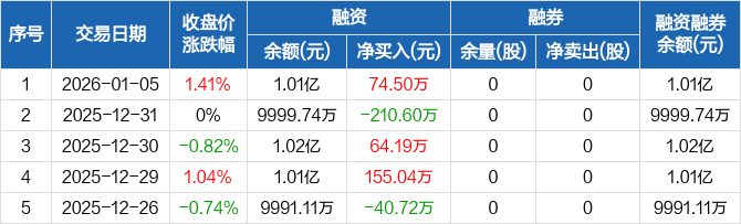 广东建科:融资净买入74.5万元,融资余额1.01亿元(01-05)