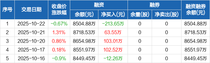 港迪技术:融资净偿还213.65万元,融资余额8504.88万元(10-22)