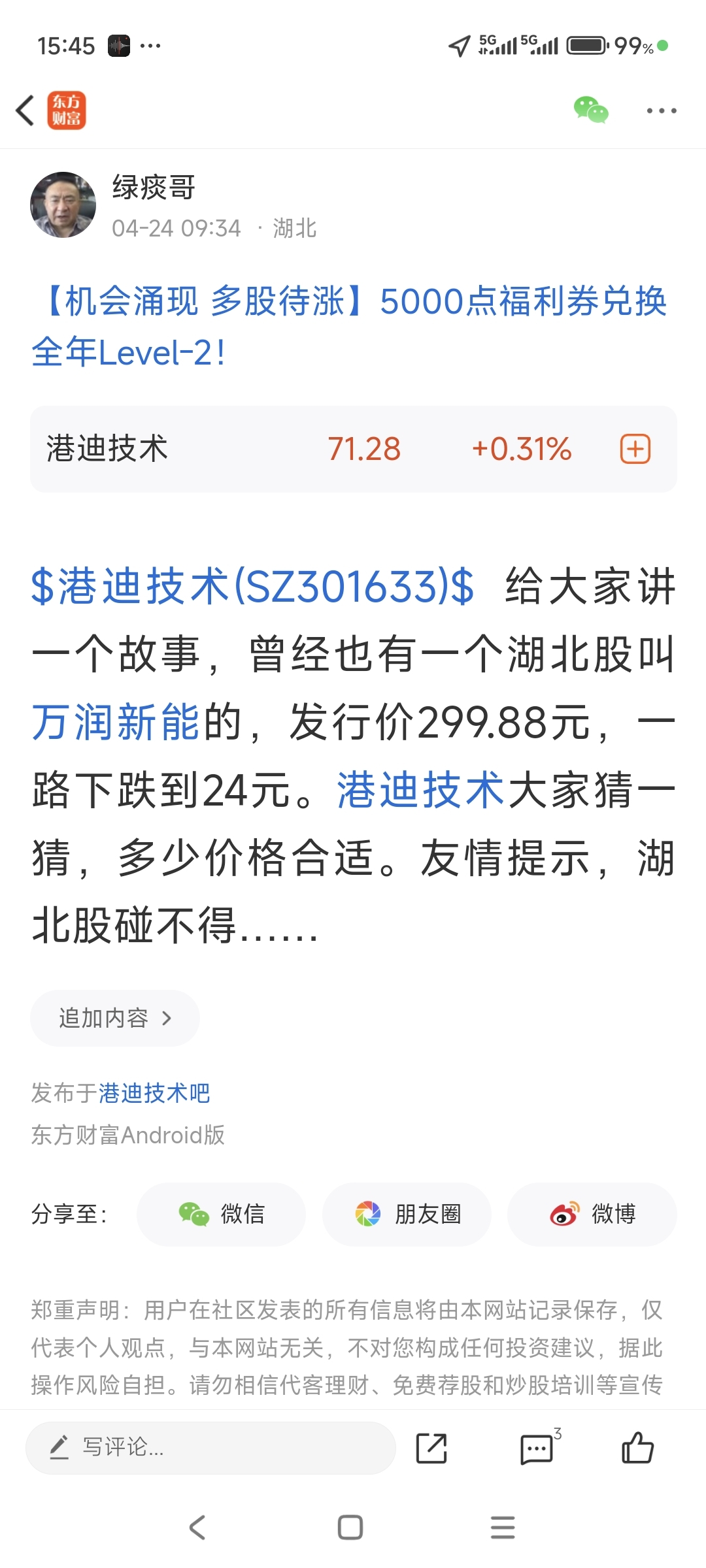 温馨提示: 1.根据《证券法》规定,禁止编造、传播虚假信息或者误导性信息,扰乱证券市场;2.用户在本社区发表的所有资料、言论等仅代表个人观点,与本网站立场无关,不对您构成任何投资建议。用户应基于自己的独立判断,自行决定证券投资并承担相应风险。《东方财富社区管理规定》