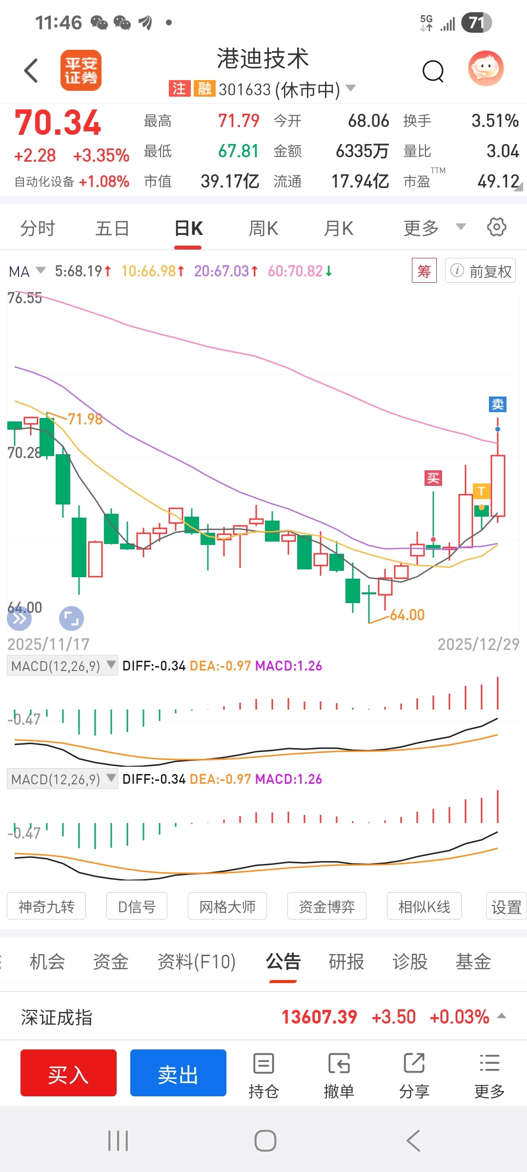 $港迪技术(SZ301633)$ 今天收仙人指路形态