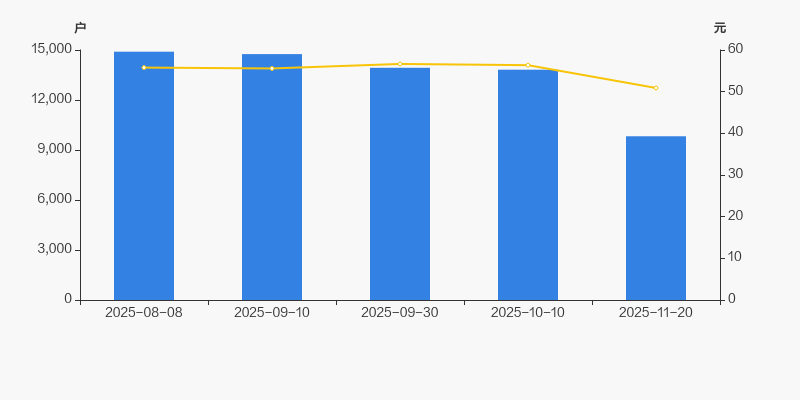 2025年8月8日至今,公司股东户数显著下降,区间跌幅为34.06%。2025年8月8日至2025年11月20日区间股价下降8.76%。