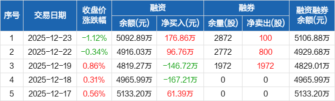 泽润新能:融资净买入176.86万元,融资余额5092.89万元(12-23)