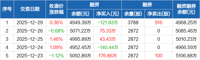 泽润新能:融资净偿还121.83万元,融资余额4949.39万元(12-29)