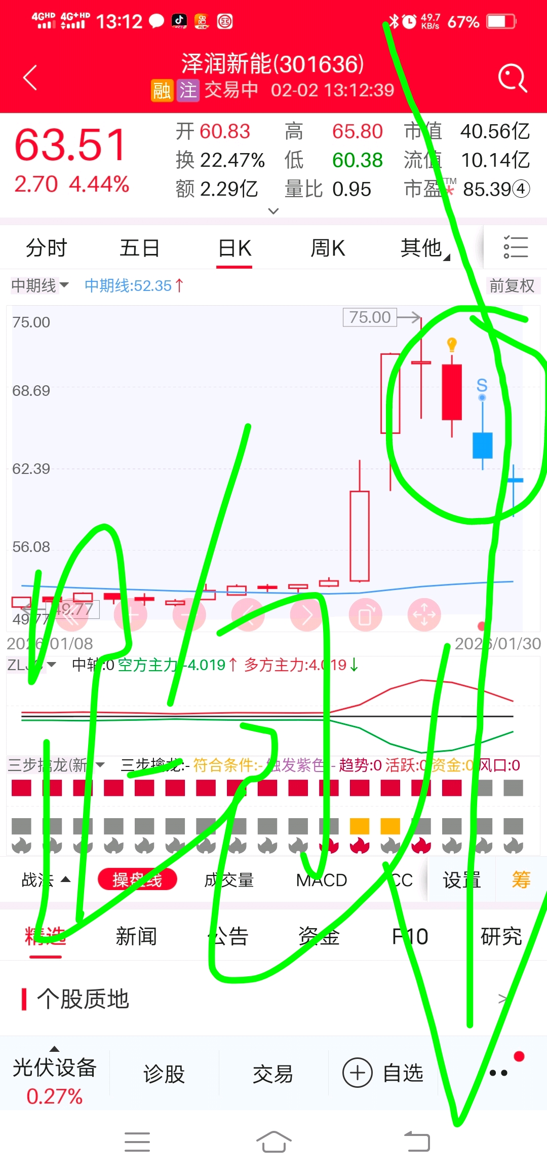 $泽润新能(SZ301636)$ 超级特大消息技术分析,主力前两天就开始出逃目前正处于诱多下跌当中,小黄灯亮了就是主力逃跑了,S出来了就是下跌趋势来了。