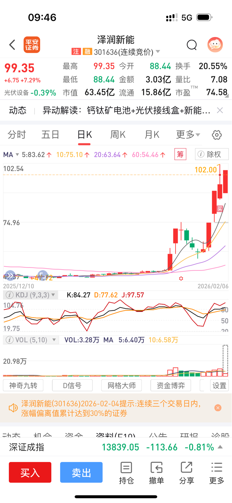 $泽润新能(SZ301636)$ 涨的继续涨,跌的继续跌,买别人不敢买,卖别人抢着买