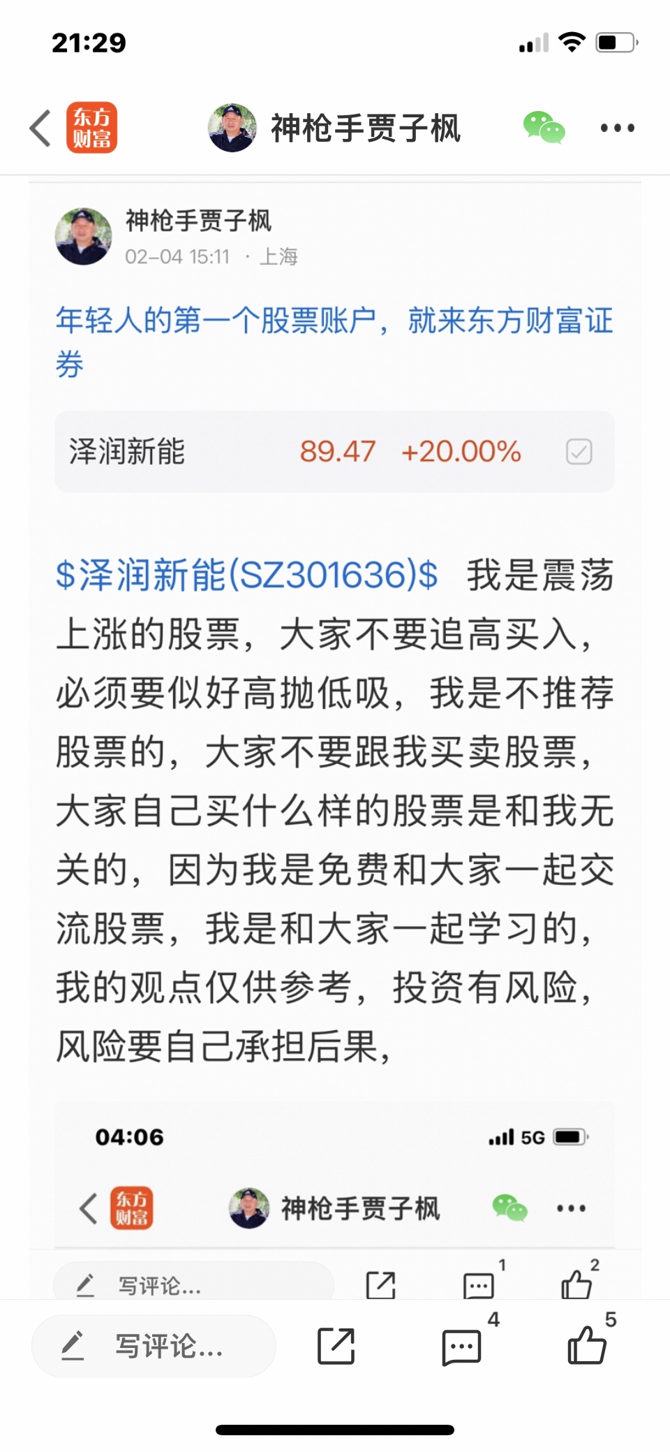 温馨提示: 1.根据《证券法》规定,禁止编造、传播虚假信息或者误导性信息,扰乱证券市场;2.用户在本社区发表的所有资料、言论等仅代表个人观点,与本网站立场无关,不对您构成任何投资建议。用户应基于自己的独立判断,自行决定证券投资并承担相应风险。《东方财富社区管理规定》