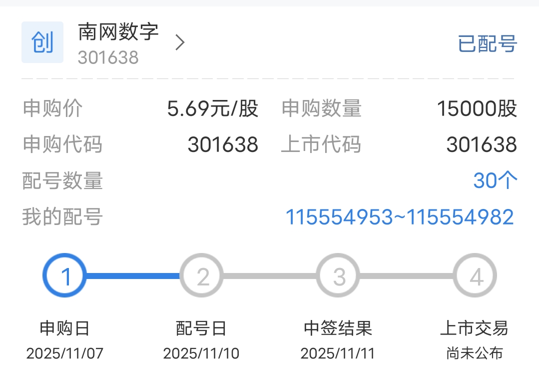 $南网数字(SZ301638)$ 有机会吗
