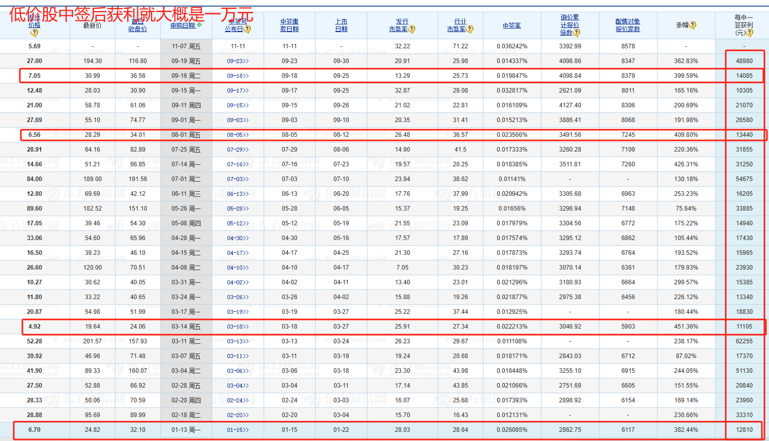 查看近期中签情况,这种低价股,获利也就是一万元左右