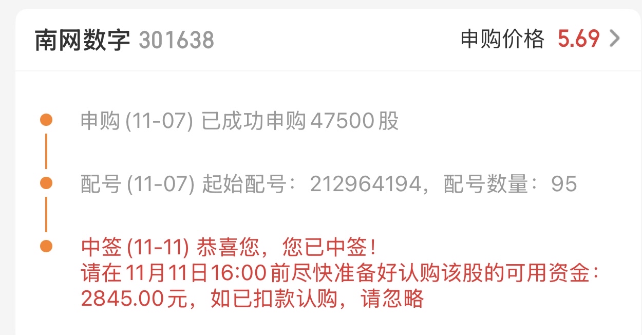 $南网数字(SZ301638)$ 玩了18年,终于中签了