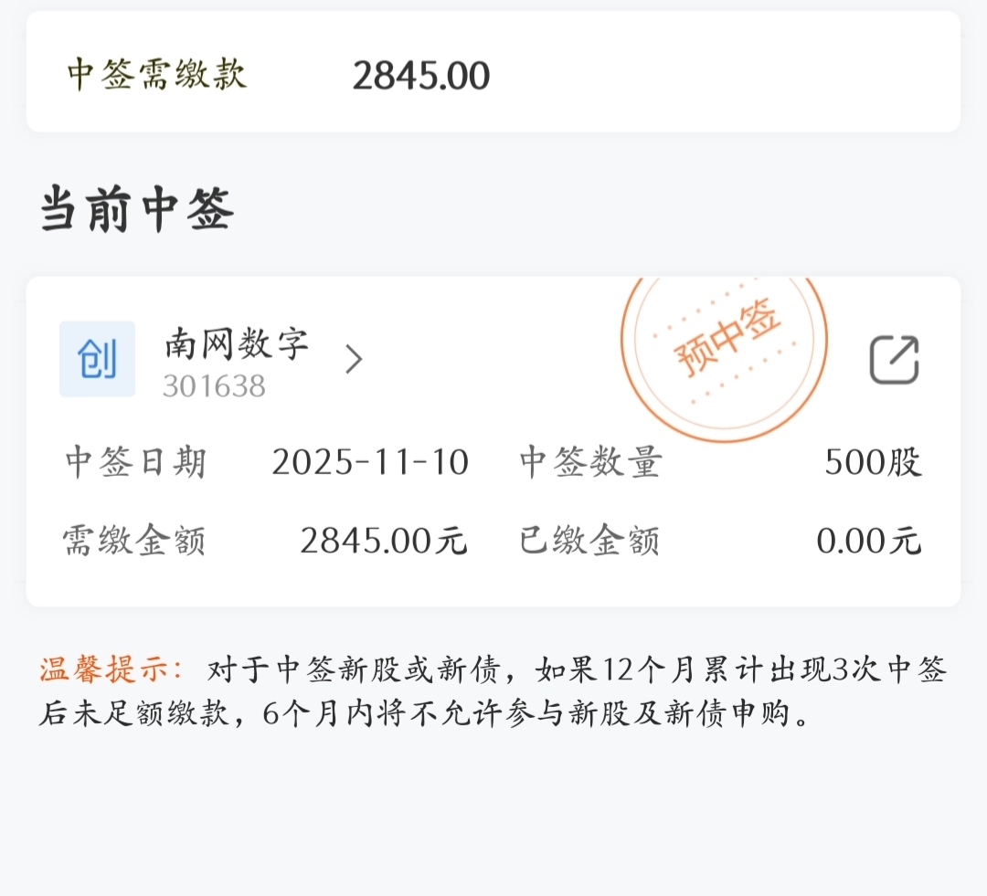 $南网数字(SZ301638)$ 十年第一次中,希望往后的日子继续